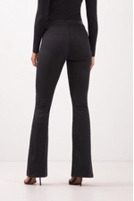 Para um look elegante com a Calça Lunender Flare, combine com uma blusa de seda branca, blazer estruturado em tom neutro e scarpin nude. Acessórios delicados, como brincos pequenos e uma bolsa tiracolo, complementam. Ideal para reuniões ou jantares, o visual une conforto e sofisticação, valorizando a silhueta e garantindo estilo moderno e atemporal.