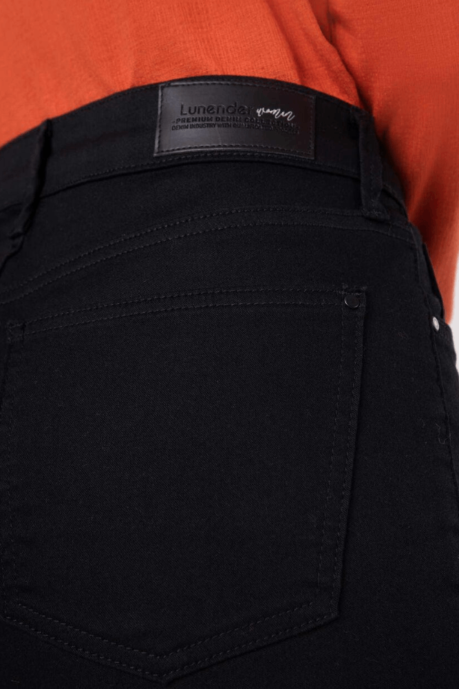 A Calça Lunender Flare Feminina Cintura Alta 20544 é confeccionada em sarja amaciada com elastano sendo 68% algodão, 30% poliéster, 2% elastano, garantindo conforto e elasticidade de até 50%. Seu corte flare é ajustado nas coxas e abre a partir dos joelhos, proporcionando caimento elegante e equilíbrio ao visual. A cintura alta valoriza a silhueta e modela o corpo. A lavagem com tecnologia “Não Desbota” mantém o tom intenso mesmo após várias lavagens. Conta com bolsos funcionais na parte externa, braguilha com fechamento tradicional e gancho confortável. A barra flare finaliza o design clássico, tornando a peça versátil para usar do trabalho ao lazer com praticidade e estilo.