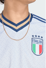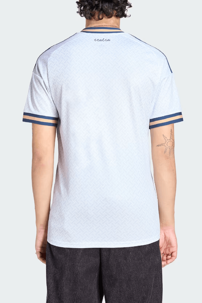 A Camisa Adidas Itália 26 Masculino Kc8704 é confeccionada em 100% poliéster reciclado com tecido piquet macio que oferece leveza e conforto. O modelo apresenta gola careca clássica que se ajusta bem ao pescoço. As mangas são curtas, ideais para liberdade de movimento dentro e fora do campo. Possui corte justo que valoriza o corpo com caimento esportivo. A estampa é sutil e elegante, inspirada em trajes formais, com escudo da seleção costurado no peito. O acabamento conta com costuras reforçadas que aumentam a durabilidade. A textura levemente canelada favorece a ventilação. Possui alta respirabilidade, leve elasticidade e eficiente controle da transpiração, com design moderno que expressa tradição e estilo esportivo.