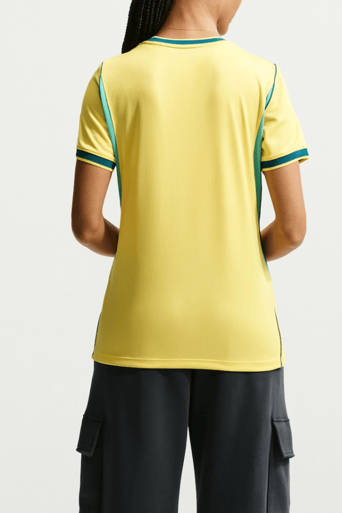 A Camisa Nike Brasil 2026/27 Torcedora Pro Feminina IB5280-724 é confeccionada em tecido 100% poliéster leve e respirável, com modelagem Torcedora Pro inspirada nos uniformes profissionais. Possui gola careca clássica e mangas curtas, com corte feminino levemente ajustado ao corpo que valoriza o caimento. A estampa apresenta design oficial da seleção com acabamento premium e visual esportivo moderno. A textura é suave e flexível, garantindo conforto e leve elasticidade para melhor adaptação aos movimentos. As costuras são reforçadas, oferecendo durabilidade e ótimo ajuste. O tecido proporciona excelente respirabilidade, favorecendo a ventilação durante o uso. O acabamento interno é limpo e confortável, com detalhes de design que reforçam a identidade esportiva e o estilo autêntico da peça, ideal para torcer com conforto e atitude.