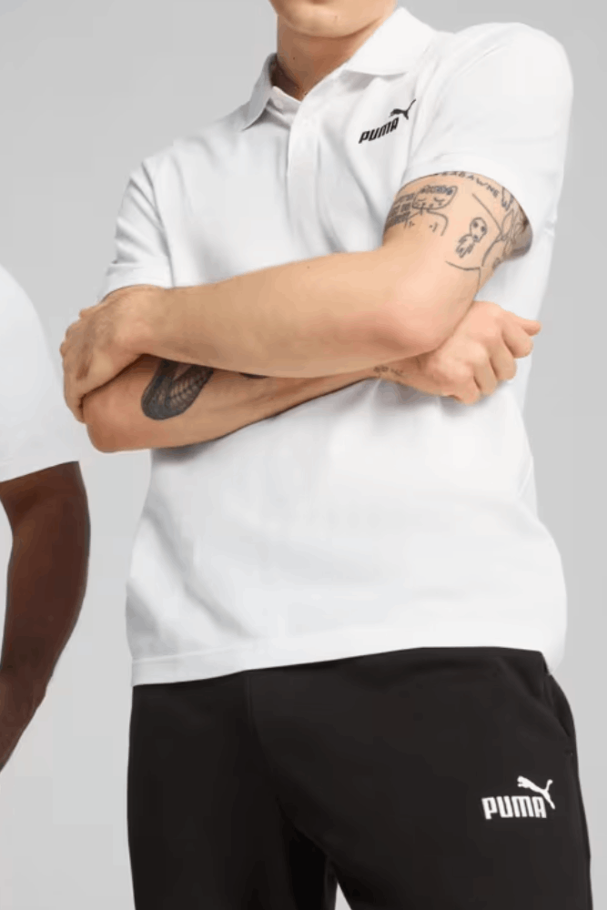 A Camisa Polo Puma Essentials Pique Masculina 682552 02 é confeccionada em tecido piquê, com pelo menos 20% de algodão reciclado, oferecendo maciez e respirabilidade. Possui modelo de corte regular, gola em ribana com carcela de dois botões e mangas curtas. O acabamento é delicado, com costuras reforçadas, textura leve e agradável ao toque. Conta com bordado do logo PUMA No. 1 e detalhes de branding, garantindo estilo esportivo e versátil. A peça proporciona elasticidade moderada e ótima ventilação, facilitando a transpiração e mantendo o conforto ao longo do dia.