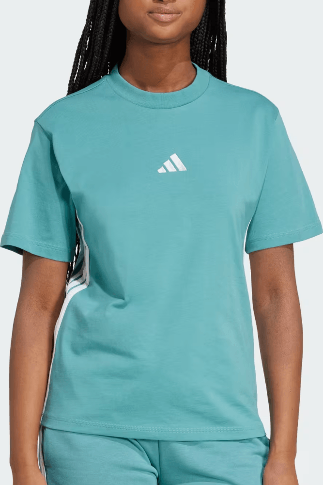 Para um look casual moderno com a camiseta Adidas Algodão Essentials Três Listras JX7617, combine-a com calça jeans slim, tênis branco clássico e jaqueta leve. Acrescente acessórios discretos, como mochila ou boné neutro. Ideal para passeio, encontro ou dia a dia, o conjunto une conforto, estilo esportivo e versatilidade, destacando a identidade icônica da marca.