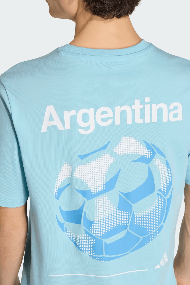 A Camiseta Adidas Arg Tng Gt Masculina KB9498 é confeccionada em tecido de malha simples 100% algodão de toque macio, garantindo conforto natural no uso diário. O tecido é leve e respirável, proporcionando sensação agradável ao vestir. O modelo apresenta estilo esportivo casual com caimento padrão. Possui gola careca canelada e mangas curtas que reforçam a praticidade. O tipo de corte é reto, oferecendo liberdade de movimentos e ajuste confortável ao corpo. A estampa traz o logo Adidas 3-Bar centralizado e identidade visual da Argentina com grafismos esportivos. O acabamento é reforçado com costuras resistentes e bem estruturadas, aumentando a durabilidade. A textura é lisa e suave, com boa respirabilidade, leve elasticidade natural do algodão e transpiração eficiente para uso prolongado. Os detalhes de design incluem elementos gráficos esportivos e inspiração no futebol, com visual moderno e identidade de torcida.