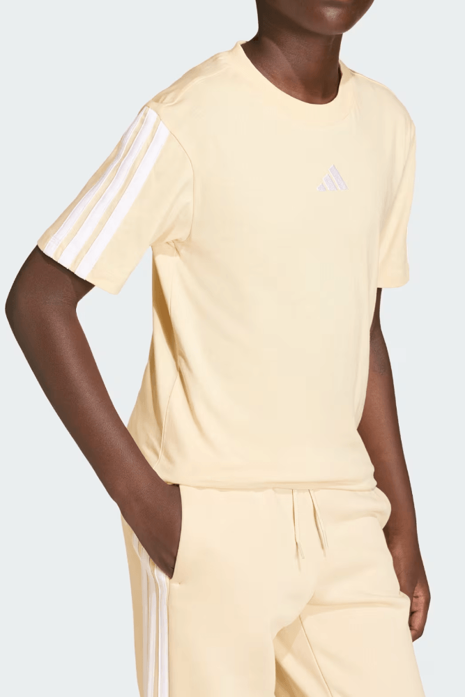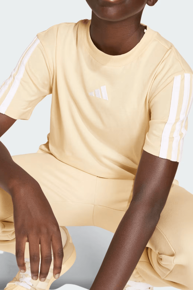 A Camiseta Adidas Essentials Infantil Menino KD8552 confeccionada em algodão 100%, com toque macio e conforto natural para o uso diário. O tecido é leve e respirável, garantindo boa ventilação e sensação de frescor ao longo do dia. A modelagem é padrão, com caimento confortável e corte reto que facilita o movimento. A gola é careca com acabamento reforçado e as mangas são curtas, ideais para rotina escolar e lazer. A estampa traz as Três Listras icônicas e logo bordado, reforçando identidade esportiva. O acabamento é limpo e resistente, com textura suave ao toque. As costuras são reforçadas para maior durabilidade. A transpiração é eficiente, ajudando no conforto térmico em diferentes atividades. O design é versátil e moderno, ideal para uso diário com praticidade e estilo.