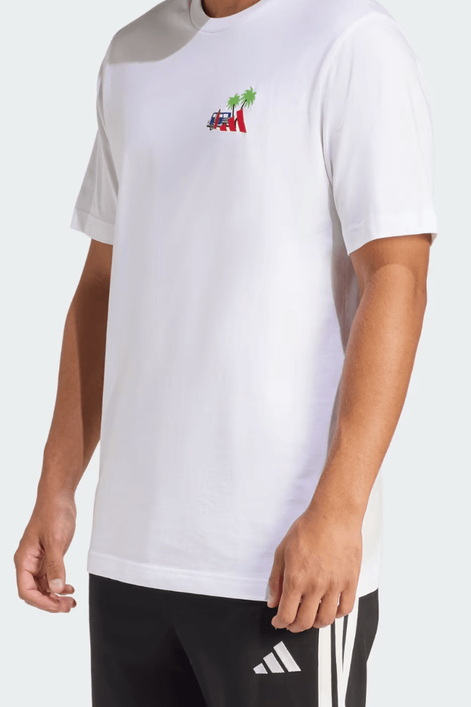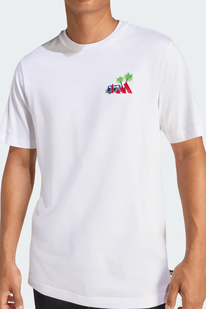 Para um visual descontraído de fim de semana, combine a Camiseta Adidas estampa Surf com bermuda de sarja clara e tênis casual ou skate. Acrescente boné e óculos de sol para reforçar a pegada praiana. Ideal para passeios ao ar livre, praia, viagens ou encontros com amigos com conforto e estilo leve.