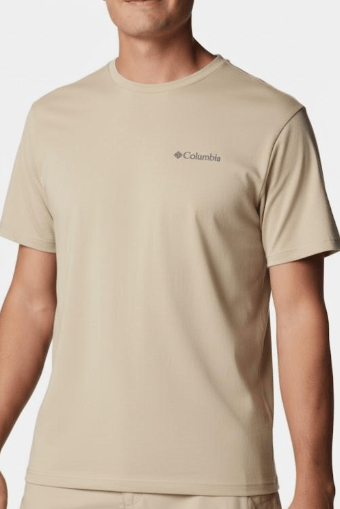 Combine a Camiseta Columbia Button Badge com uma bermuda cargo caqui e um tênis casual branco para um look leve e confortável. Acrescente um boné e uma mochila simples para praticidade. Ideal para um passeio de fim de semana, um café ao ar livre ou um dia descontraído na cidade, garantindo estilo natural e conforto o dia todo.