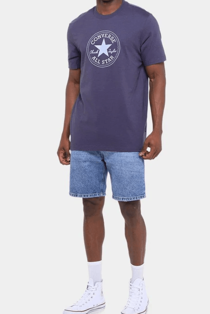 Para um passeio casual, combine a Camiseta Converse Patch Logo Standard Fit com uma calça jeans reta, tênis Converse All Star preto e mochila em couro sintético. Acrescente um relógio minimalista e óculos de sol. O look une conforto e estilo urbano, perfeito para um dia de atividades leves, encontro com amigos ou passeio no parque, mantendo o visual moderno e despojado.