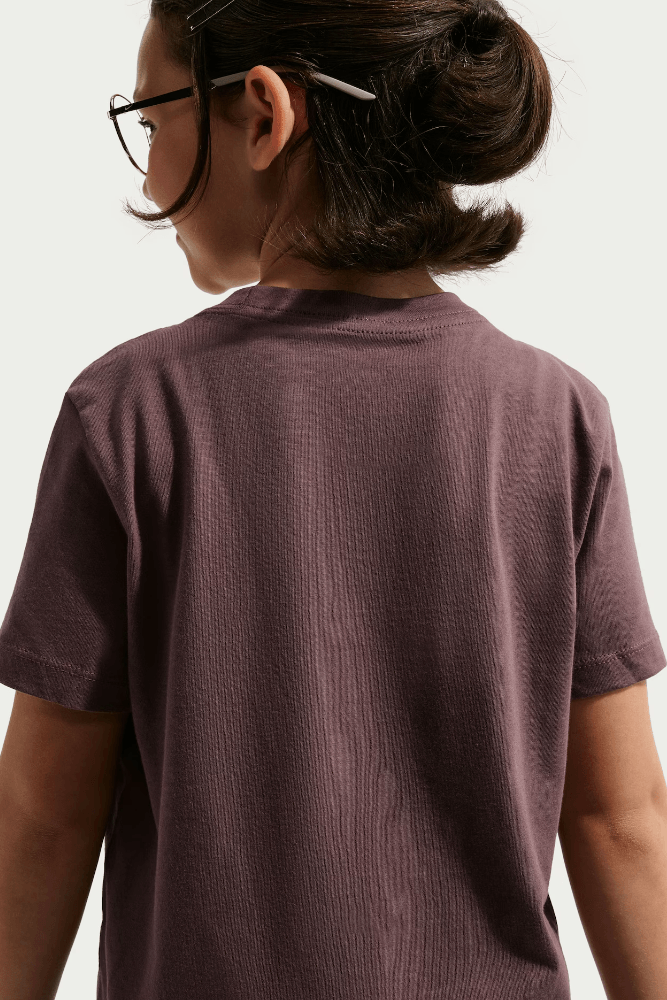 A Camiseta Nike Sportswear Futura Infantil Menina FZ5177-502 é confeccionada em 100% algodão macio e ventilado, proporcionando conforto durante o uso. O tecido é leve e respirável, permitindo boa circulação de ar, com textura suave e toque agradável. O modelo é clássico, com gola careca e mangas curtas, corte reto que garante liberdade de movimento. Possui estampa do logotipo Futura bordado, acabamento reforçado nas costuras e elasticidade natural do algodão, que favorece a adaptação ao corpo. O design inclui detalhes sutis que destacam a marca sem comprometer a simplicidade, facilitando a transpiração e mantendo a sensação de frescor durante o dia a dia da criança.
