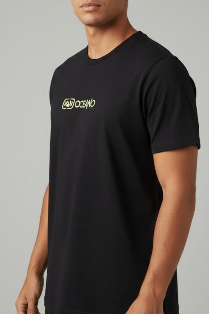 Camiseta Oceano Logo Masculina Em Algodão 19987 Preto