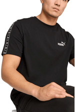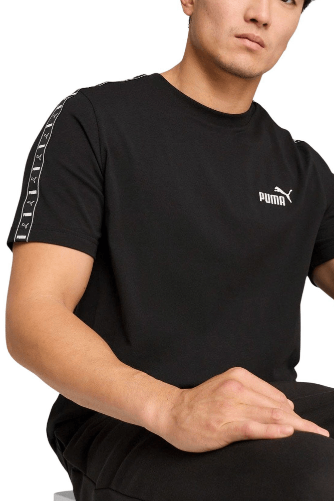 A Camiseta Puma Casual Masculina Essential Tape Shirt 684674 01, é confeccionada em algodão com toque macio e fibras que aumentam o conforto no uso diário. O tecido é leve, respirável e com boa elasticidade natural, facilitando os movimentos. O modelo é casual esportivo, com gola careca canelada e mangas curtas. Possui corte regular, que veste bem sem limitar o corpo. A estampa em tape com o logo Puma nas laterais adiciona identidade ao visual. O acabamento é limpo e reforçado, com costuras resistentes. A textura é suave na pele, ajudando na transpiração e mantendo sensação fresca ao longo do dia, unindo estilo, praticidade e conforto.