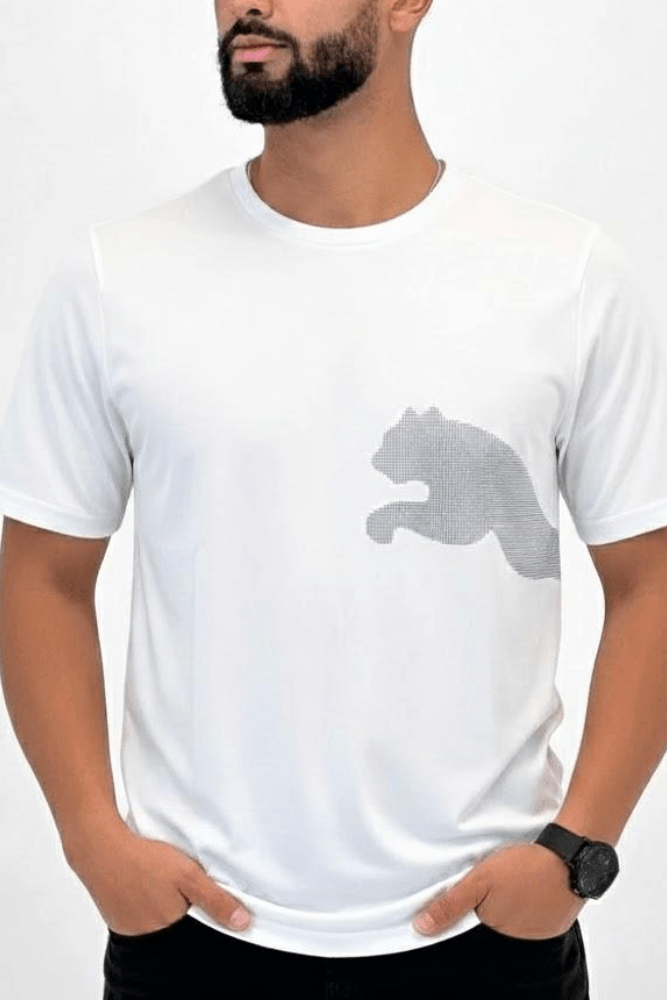 Camiseta Puma Dry Manga Curta Big Logo Masculina 527207 01 Branco