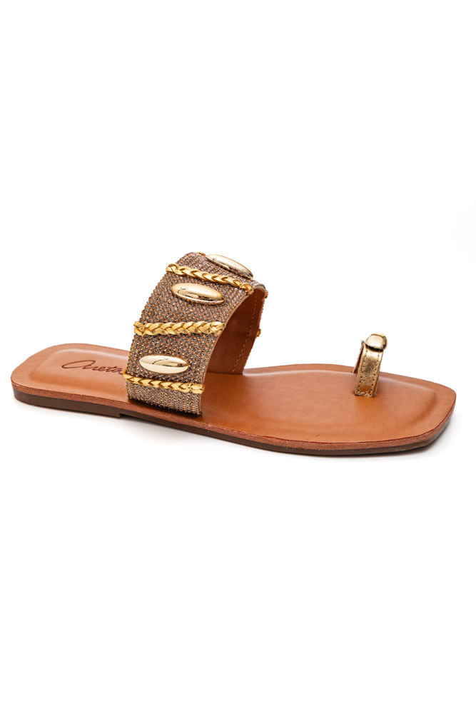 O Chinelo Areta Rasteira Feminino Com Strass 3454 possui a parte superior com tira larga texturizada e decorada com pequenas pedras brilhantes, oferecendo um toque sofisticado. O solado é fino, discreto e confeccionado em borracha TR, garantindo leveza e aderência. A base do chinelo é plana, com acabamento em couro liso e leve curvatura para melhor ajuste ao pé. O formato é clássico e confortável, ideal para uso casual. Não possui fechamento, sendo fácil de calçar, e conta com a marca Areta discretamente aplicada. Funciona como calçado versátil, unindo estilo, conforto e praticidade para o dia a dia.