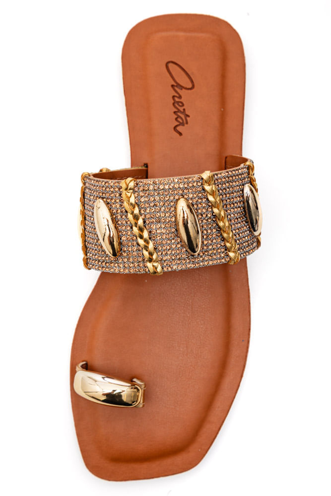 Para um passeio casual ou almoço com amigas, combine o Chinelo Areta Rasteira com um vestido leve estampado em tons neutros ou pastéis, bolsa tiracolo pequena em couro sintético e acessórios delicados como brincos de strass. Finalize com óculos de sol estilosos e cabelo solto ou preso de forma natural, criando um visual confortável, elegante e moderno para o dia a dia.