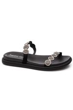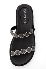 O Chinelo Beira Rio Papete Feminino Rasteira 8488.129 em material sintético resistente, com solado de borracha TR antiderrapante estampado, garantindo segurança ao caminhar. Possui duas tiras finas decoradas com apliques redondos e cravejados, proporcionando charme e delicadeza. Formato anatômico que se ajusta aos pés, com palmilha bem acolchoada para maior conforto. Conta com logo Beira Rio discreto, sem fechamento, facilitando o calce. Ideal para uso casual e passeios, oferecendo leveza e estilo. Design versátil que combina com diversos looks de verão.