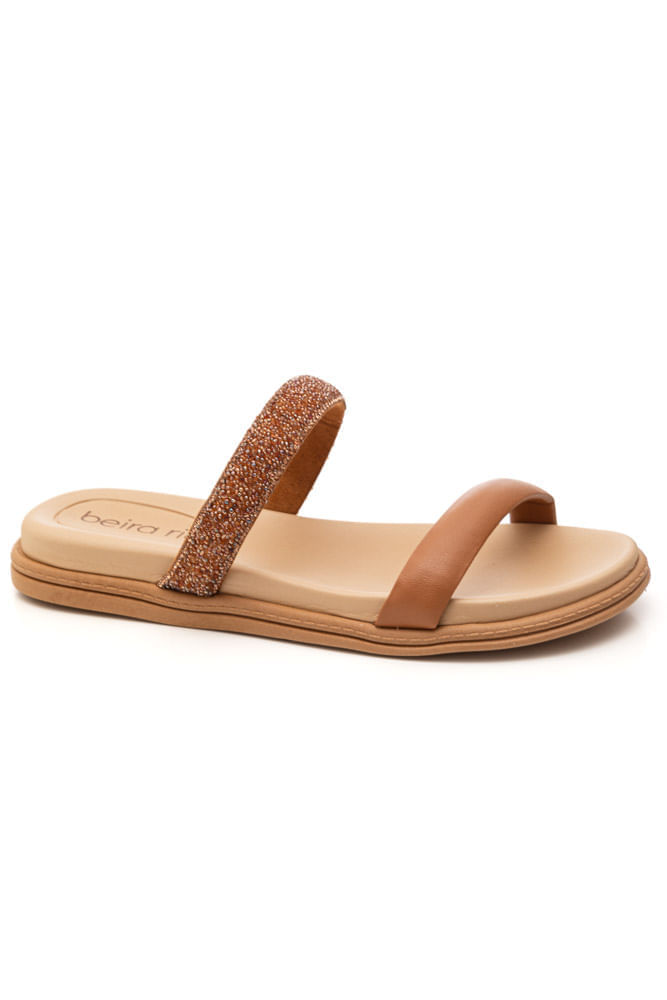 Chinelo Beira Rio Rasteiro Strass 8488.122.30448 Caramelo