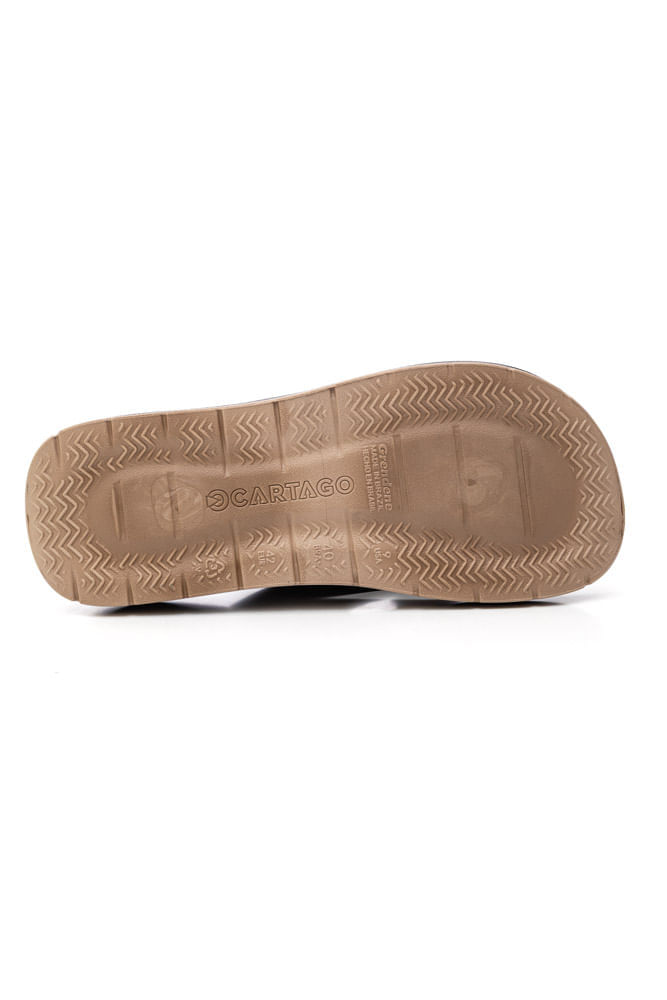 Para um passeio descontraído à tarde, combine o Chinelo Cartago Santorini Viii com bermuda de sarja bege, camiseta gola careca em algodão verde musgo e óculos escuros. Acrescente um relógio casual com pulseira marrom para um toque de estilo. O visual é confortável, elegante e ideal para caminhar com leveza e sofisticação em dias quentes.