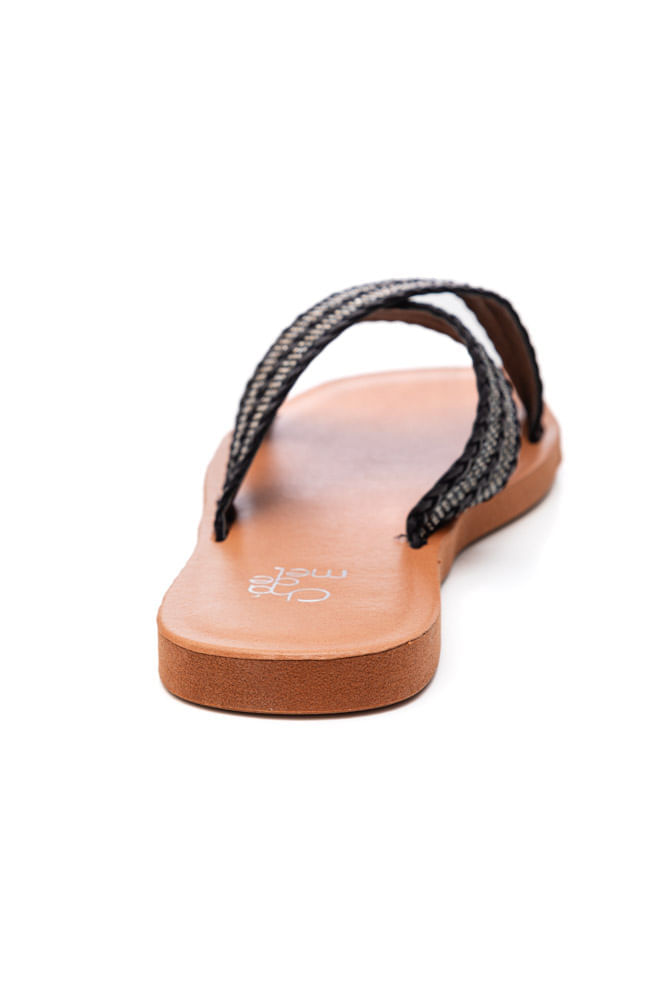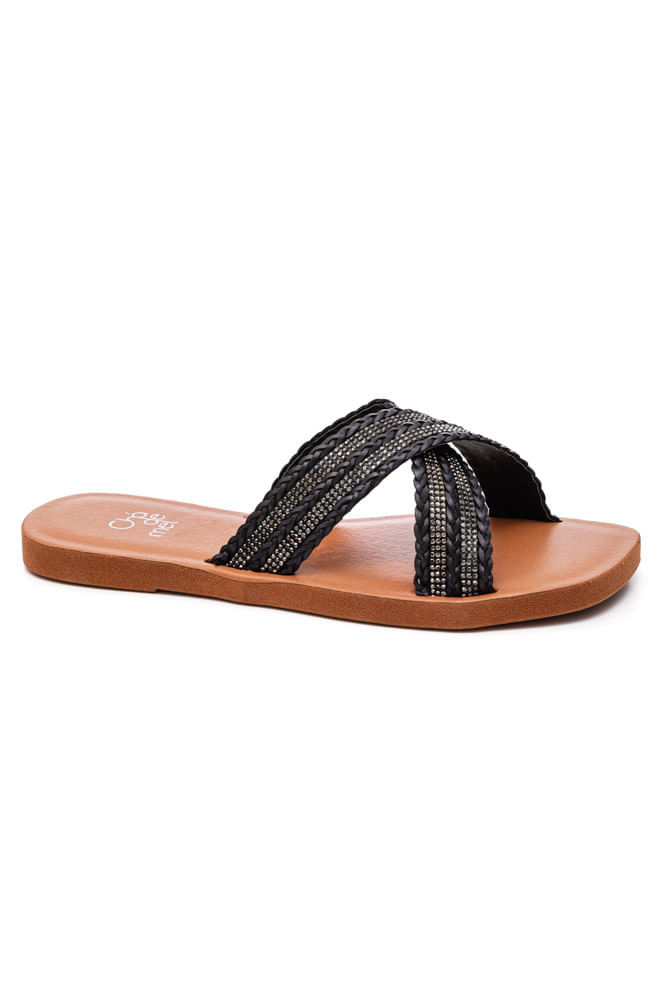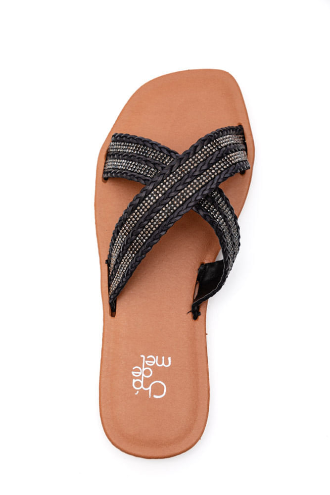 Chinelo Chá De Mel Rasteira Feminina Strass Trança Lc9003 Preto
