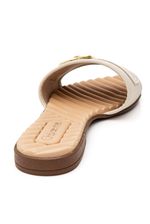 O Chinelo Chá De Mel Rasteira Feminino Slide 8558.103.29897 é confeccionado em material sintético resistente, garantindo durabilidade no uso. Seu cabedal traz uma única tira larga decorada por uma fivela metálica dourada, acrescentando sofisticação ao visual. A palmilha é macia e acolchoada, proporcionando conforto a cada passo. O solado é plano, em borracha TR antiderrapante, com salto discreto de aproximadamente 1,5 cm na parte traseira. O design é minimalista, moderno e prático, ideal para o dia a dia. O logo Chá De Mel aparece de forma sutil, reforçando a autenticidade da peça.