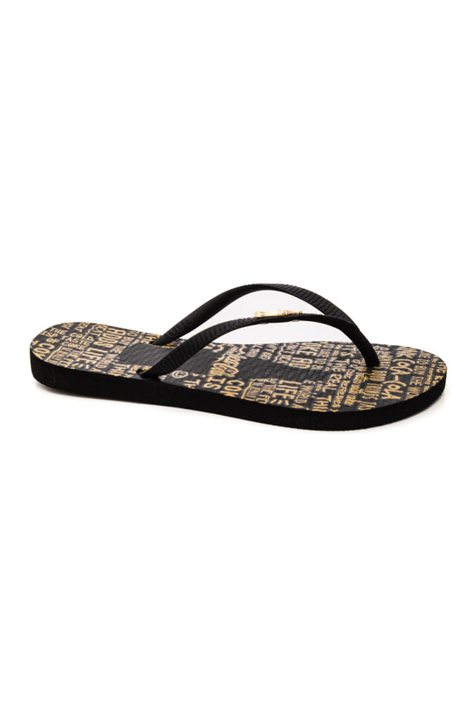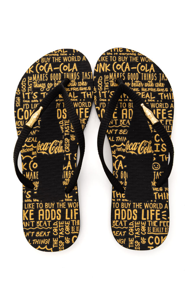 O Chinelo Coca-Cola Glow Letter Feminino Detalhe Metálico Na Tira Cc4828 é confeccionado em borracha resistente, garantindo durabilidade e conforto no uso diário. Possui solado em borracha antiderrapante, com estampa em dourado que traz frases icônicas e o logotipo clássico da marca sobre base preta. Conta com tiras finas em borracha, com detalhe metálico dourado em formato da garrafa contour, agregando sofisticação. Seu formato é anatômico, proporcionando melhor encaixe e maciez ao caminhar. Não possui fechamento, sendo prático e de fácil calce. Ideal para compor looks casuais com estilo urbano, une personalidade, segurança e charme exclusivo.