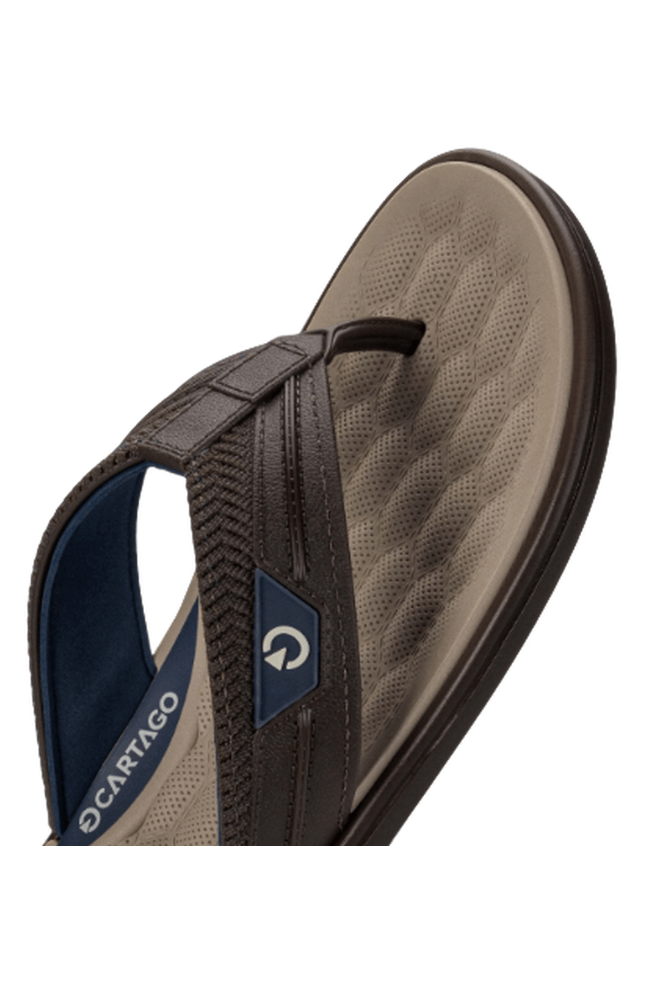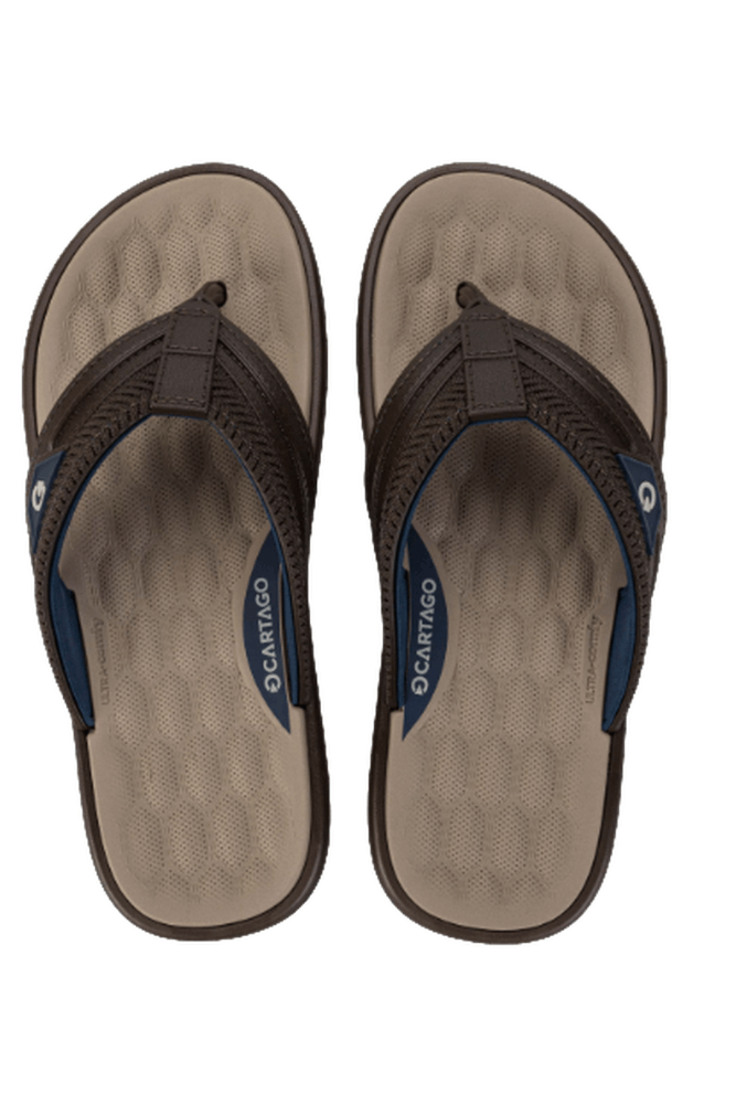 O Chinelo De Dedo Cartago Malta Vi Masculino 12496-Bh040 é feito com material sintético resistente e confortável, ideal para uso diário. Possui solado emborrachado com design texturizado e padrão geométrico, que oferece maior aderência e segurança antiderrapante. A tira tipo slim é mais larga na parte superior e afunila levemente para a sola, proporcionando ajuste firme e estilo moderno. A palmilha conta com relevo inspirado em assentos automotivos, com toque macio e aveludado que garante conforto a cada passo. O fechamento é tradicional de dedo, sem ajustes, e o logo discreto da marca Cartago está presente na tira. Funcional e elegante, é perfeito para quem busca conforto com design marcante.