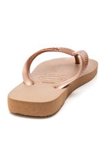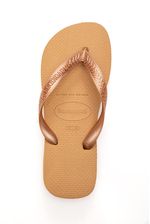 O Chinelo de Dedo Havaianas Feminino Top é confeccionado em borracha por completo, de alta qualidade e durabilidade. Conta com tira sintética de dedo regular monocolor, com grafia da marca em relevo, modelo simples mas ao mesmo tempo despojado. Possui palmilha plana lisa em cor uniforme, o encaixe dos pés é agradável com a junção de conforto e fácil higienização. Solado rasteiro, com detalhes em frisos que evitam escorregões.