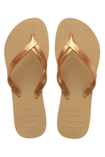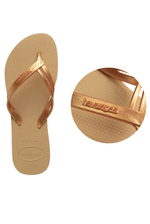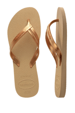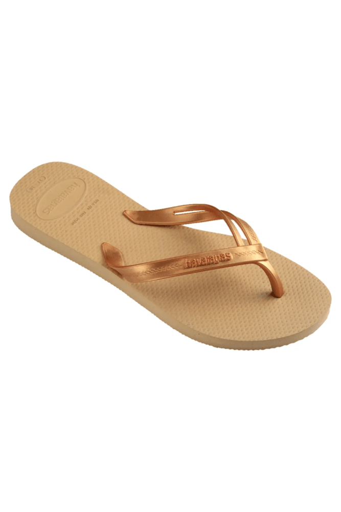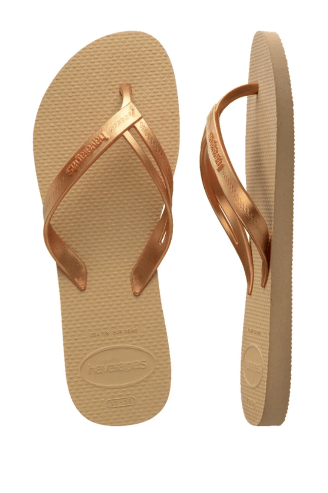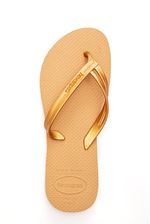 A Havaianas Elegance Feminino 0570 é uma combinação perfeita de simplicidade e luxo. Este chinelo oferece todo o conforto característico da marca, com tiras lisas metalizadas que possuem um filete vazado em um dos lados, conferindo um toque sofisticado. Apresenta um solado slim com estampa lisa e tiras metálicas regulares. A cartela de cores é refinada, destacando a elegância do modelo.Feita de borracha com PVC.