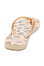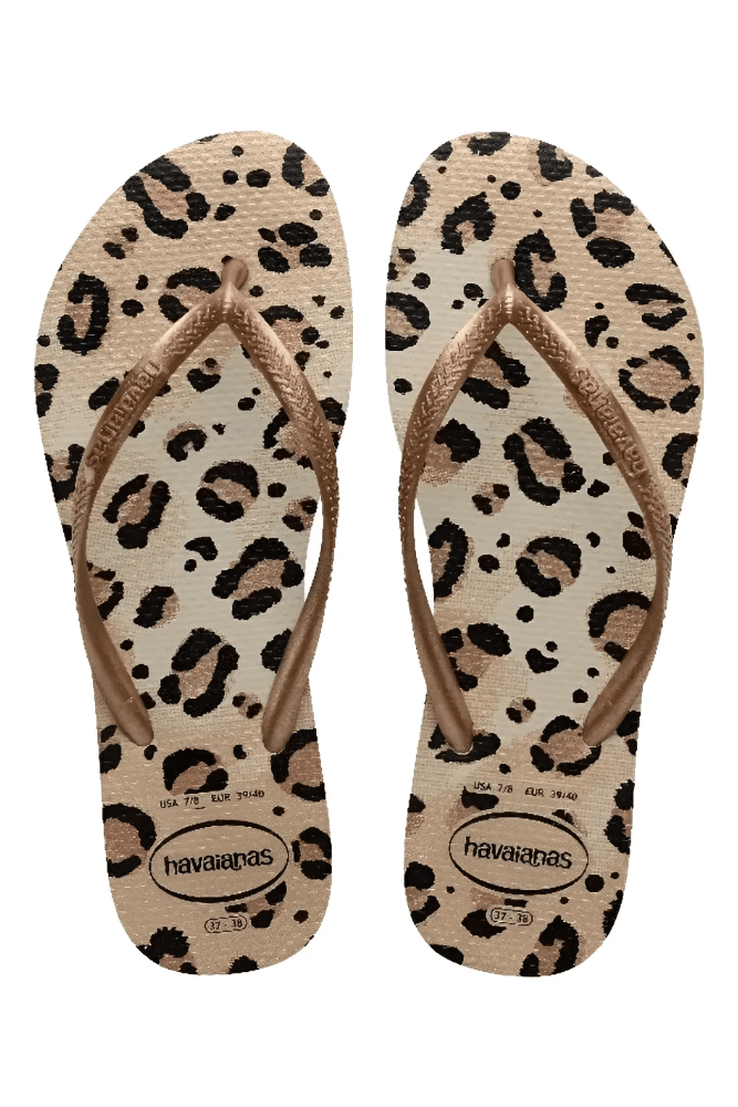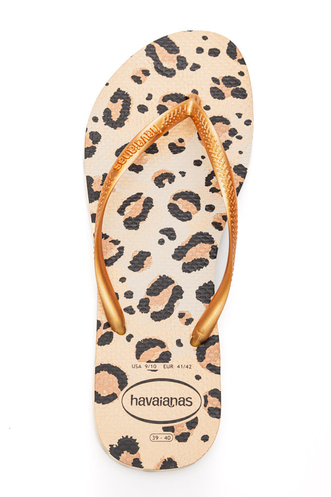 O Chinelo Havaianas Feminino Animals 6516 é a escolha perfeita para quem busca conforto, estilo e qualidade incomparáveis. Este ícone atemporal da moda é um clássico da marca Havaianas, reconhecido mundialmente. Possui como destaque, sua estampa de animal print, remetendo à pelagem dos animais com seu design elegante. Seu formato slim (solado e tiras finas) proporciona um visual mais delicado, realçando a beleza dos pés femininos. Feito em borracha por inteiro de alta qualidade, apresenta tira em “V” que se une ao meio do cabedal, possuindo textura em relevo do nome da marca. Sua sola emborrachada oferece aderência superior, garantindo passos seguros em qualquer superfície.
