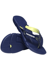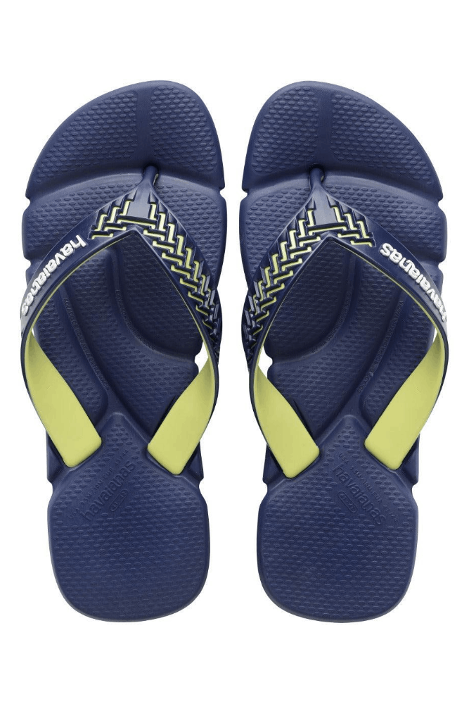 O Chinelo Havaianas Power 2.0 Masculino 2.0 0135 é feito em borracha extra macia, oferecendo máxima maciez e conforto. O solado anatômico possui relevos que massageiam os pés e proporcionam aderência, ideal para o pós-treino. A estampa segue o padrão liso com textura funcional. Suas tiras largas, bicolores e com textura reforçada garantem firmeza ao caminhar. Tem formato tradicional, sem fechamento, facilitando o calce rápido. O logo Havaianas aparece em alto-relevo na tira, reforçando a autenticidade e o estilo esportivo do modelo.