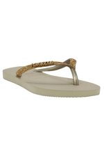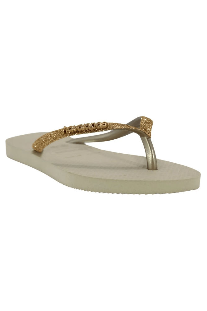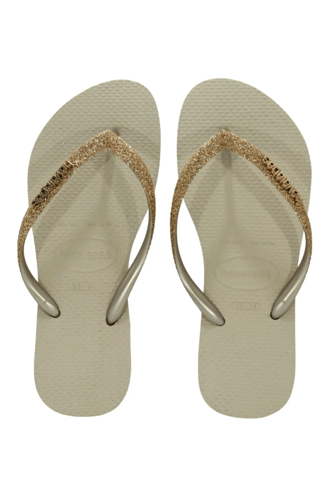 CHINELO HAVAIANAS SL GLITTER 0121 Com tiras finas revestidas de glitter, ele adiciona um toque de brilho e sofisticação ao seu look, sem perder a leveza e praticidade que só a Havaianas oferece. Ideal para quem gosta de se destacar com elegância, seja na praia, piscina ou em momentos casuais. Produzido com borracha de alta qualidade, garante durabilidade e conforto para os seus pés.
