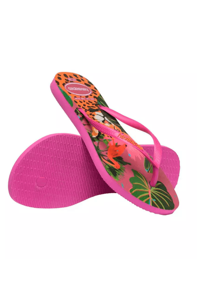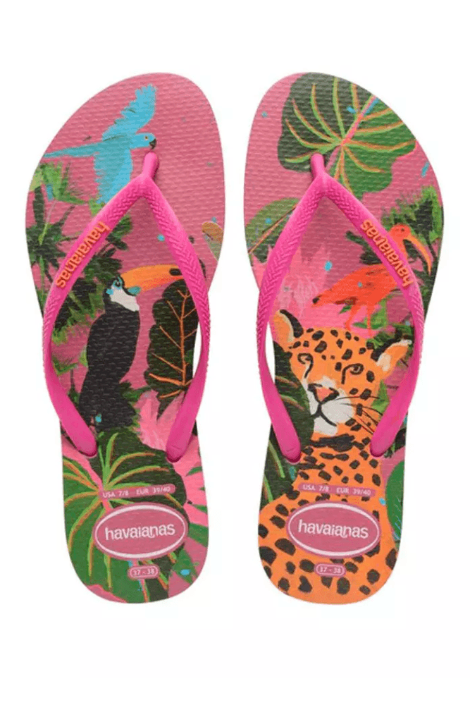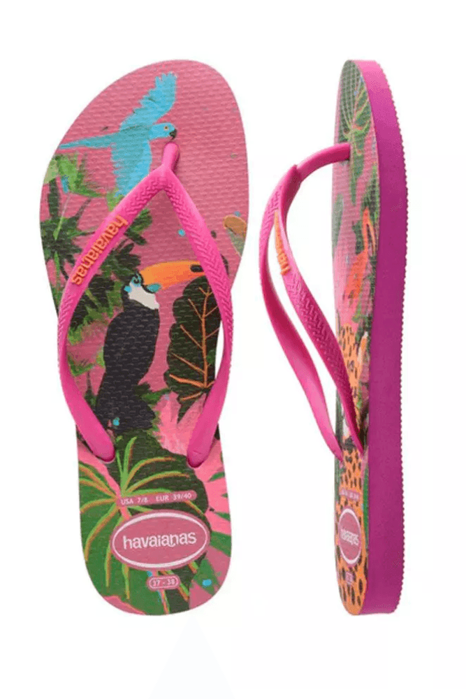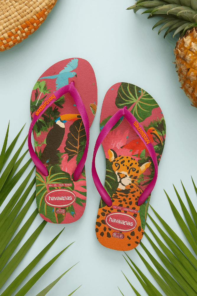 O Chinelo Havaianas Summer Bliss Feminino Estampa 4622 é feito de borracha de alta qualidade, com solado antiderrapante e estampas vibrantes inspiradas na fauna e flora brasileiras. O solado slim é mais fino e leve, proporcionando conforto e praticidade para os dias quentes. As tiras finas possuem acabamento delicado e o logo Havaianas em cores contrastantes, adicionando um toque de estilo. Seu formato anatômico garante ajuste perfeito aos pés, enquanto o design sem fechamento oferece praticidade. Ideal para momentos de lazer, combina funcionalidade e elegância tropical para completar seu verão.