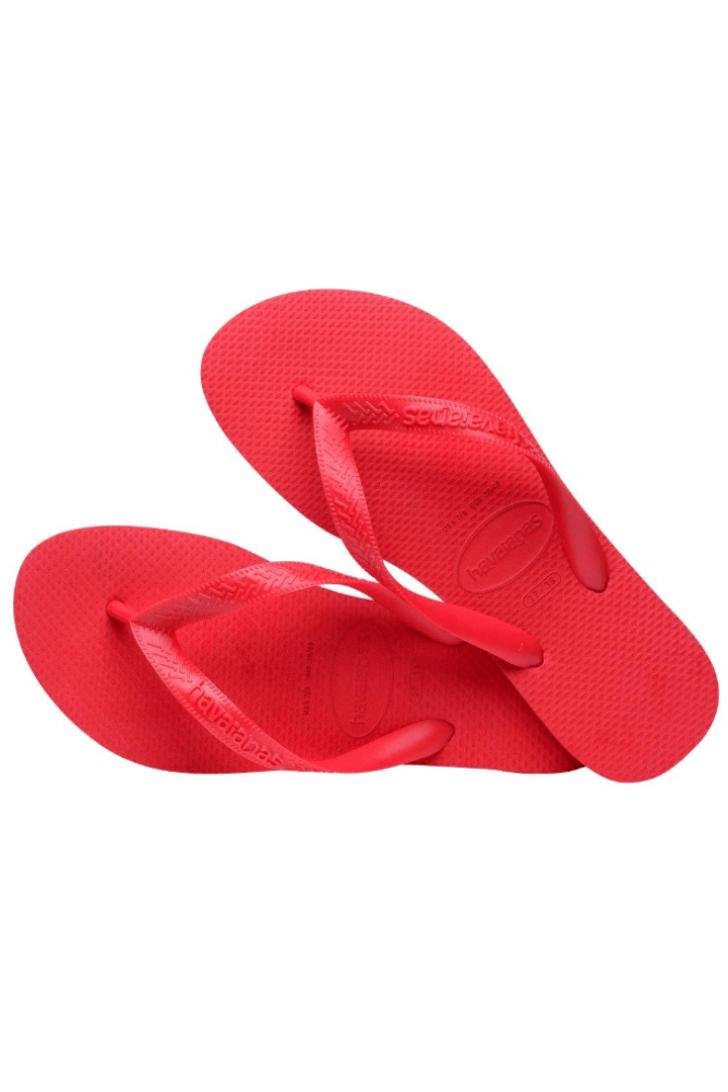 O Chinelo Havaianas Top Unissex é confeccionado em borracha 100%, com solado tradicional antiderrapante e estampa lisa. As tiras são regulares, monocolor, feitas de PVC texturizado, proporcionando conforto e estabilidade. O formato é clássico, com tiras grossas e encaixe perfeito aos pés. Não possui fechamento, sendo de fácil calce. O logo Havaianas aparece em alto-relevo nas tiras. Ideal para o dia a dia, oferece versatilidade e durabilidade, mantendo o frescor em todas as ocasiões.