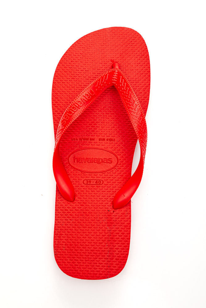 O Chinelo de Dedo Havaianas Masculino Top é confeccionado em borracha por completo, de alta qualidade e durabilidade. Conta com tira sintética de dedo regular monocolor, com grafia da marca em relevo, modelo simples mas ao mesmo tempo despojado. Possui palmilha plana lisa em cor uniforme, o encaixe dos pés é agradável com a junção de conforto e fácil higienização. Solado rasteiro, com detalhes em frisos que evitam escorregões.