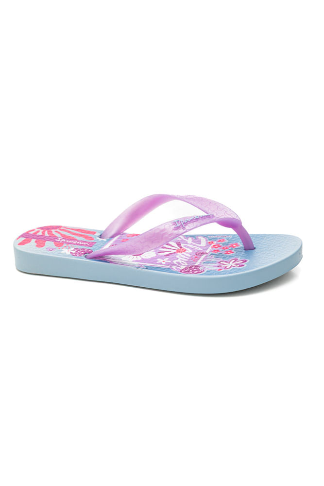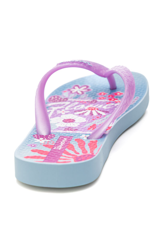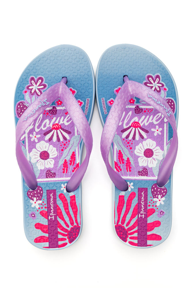 'CHINELO IPANEMA 25479-BX095 Novas grafias com temas importantes para o universo infantil. Para os meninos, a temática de aventura e exploração ganha destaque com um jipe em meio a um cenário tropical. Já para as meninas, o layout floral em formato de quadro que mistura flores e frutas, em alta na moda, criando uma composição divertida, leve e cheia de frescor.