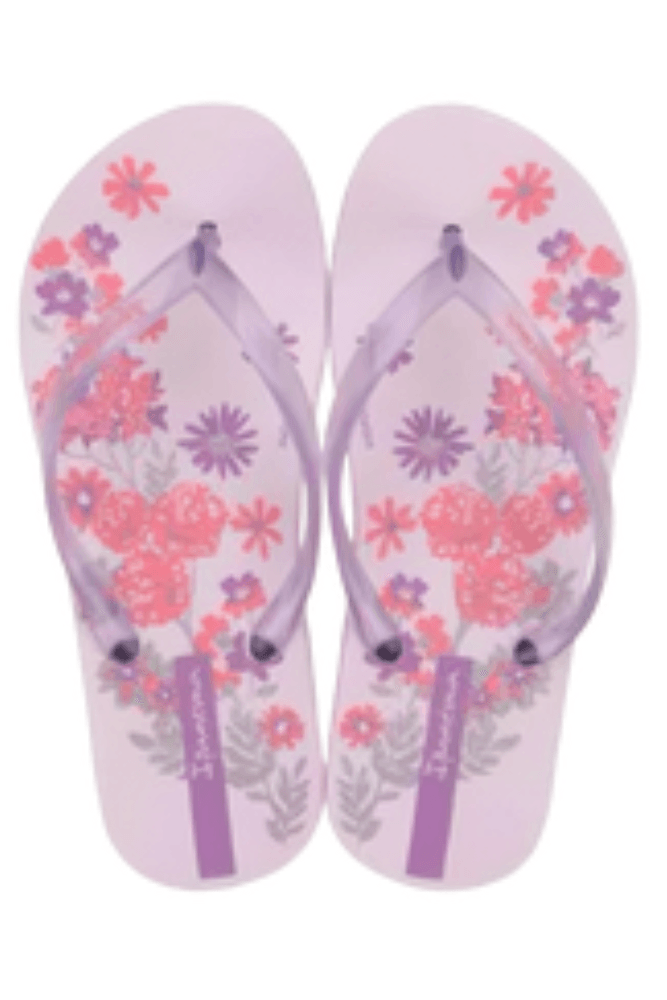 O Chinelo Ipanema Infantil Menina Flores 27264-BF031 é confeccionado em borracha, garantindo maciez e conforto para os pés. O solado é antiderrapante, oferecendo segurança em superfícies escorregadias, com estampa florida. A tira é do tipo tradicional, larga e ajustável ao formato do pé, proporcionando um encaixe seguro e confortável. A logo da Ipanema está discretamente aplicada na lateral da tira. Ideal para o uso casual, ele é funcional para o dia a dia das crianças, oferecendo conforto e praticidade.