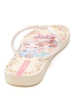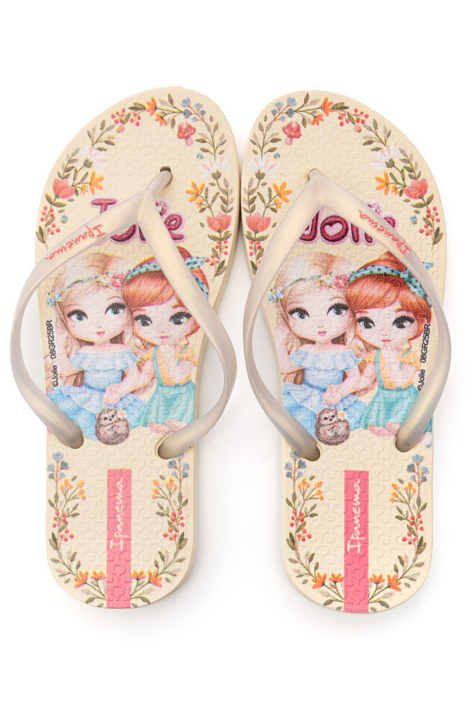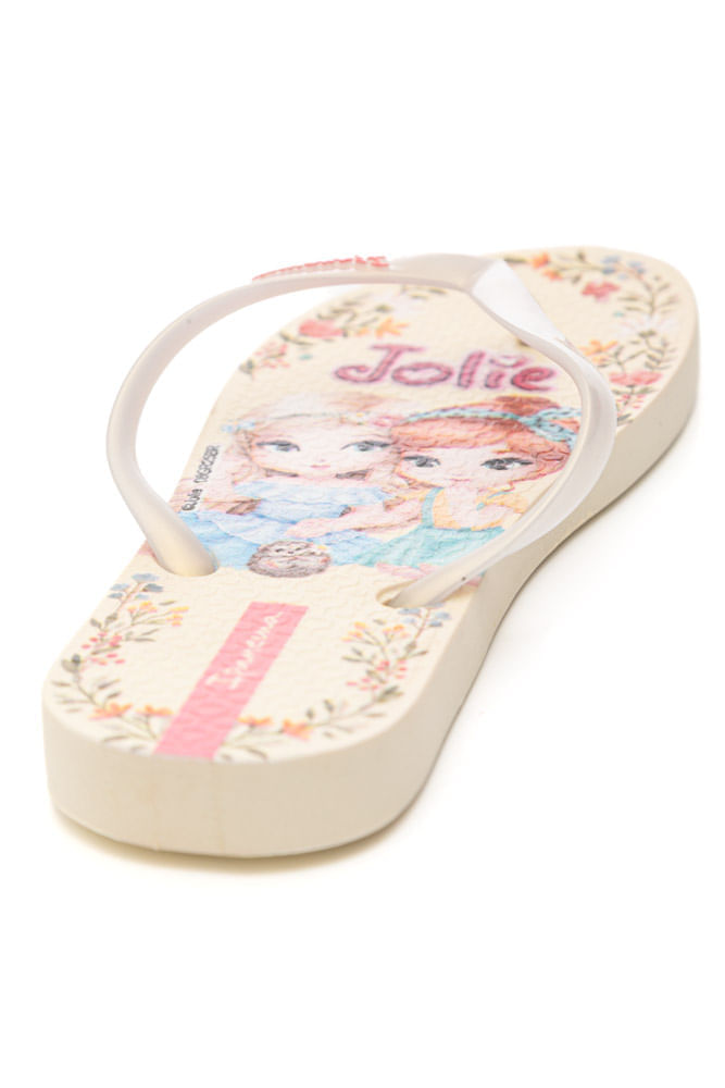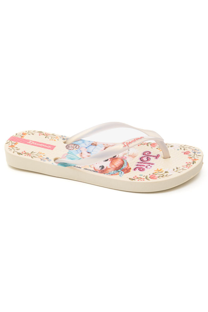 O Chinelo Ipanema Jolie Amores Infantil De Dedo 27307-Bt438 é confeccionado em material sintético leve e resistente, com solado em PVC antiderrapante estampado com delicados detalhes que acompanham a temática da palmilha. Possui tira slim com acabamento perolado, trazendo charme e conforto, no formato anatômico que se ajusta ao pé da criança. O fechamento é por encaixe simples de dedo, garantindo praticidade ao calçar. A palmilha apresenta estampa das três personagens da licença Jolie com seus bichinhos favoritos em cenário inspirado na natureza e nas estações do ano. A marca Ipanema está discretamente aplicada na tira, reforçando a autenticidade do produto. Funciona como calçado casual, leve e confortável para o dia a dia, ideal para passeios e momentos de lazer.