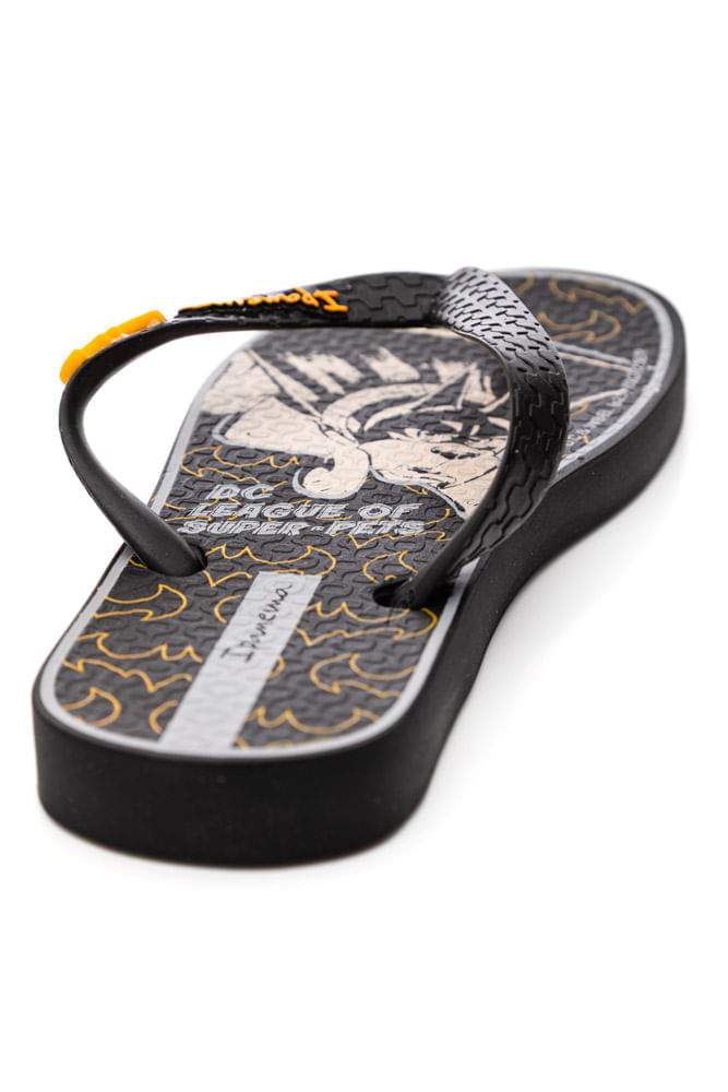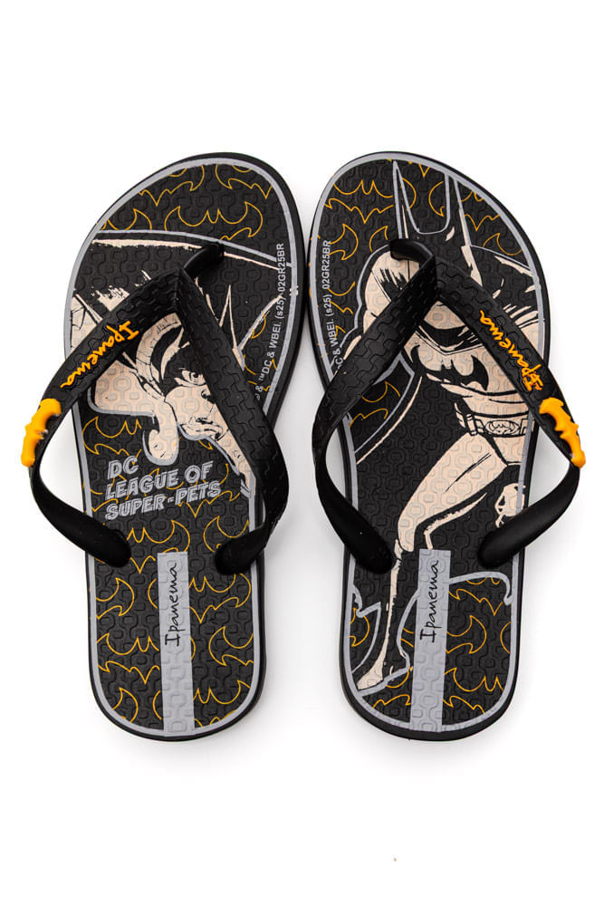 O Chinelo Ipanema Super Pets Infantil De Dedo 27361-Bm234 é feito em material flexível e resistente, ideal para o uso infantil diário. Possui solado emborrachado, trazendo contraste com a base e detalhes dos personagens. As tiras de dedo tipo slim são macias, com textura sutil e flexível, garantindo conforto e segurança ao caminhar. O formato é anatômico, típico de chinelos de dedo, sem fechamento adicional, facilitando o calce. Apresenta aplique de licença da DC ao lado do logo Ipanema, unindo estilo e autenticidade. Cada chinelo traz ilustrações detalhadas do Batman e seu pet, com referência à "DC League of Super-Pets", tornando-o funcional e divertido para crianças.