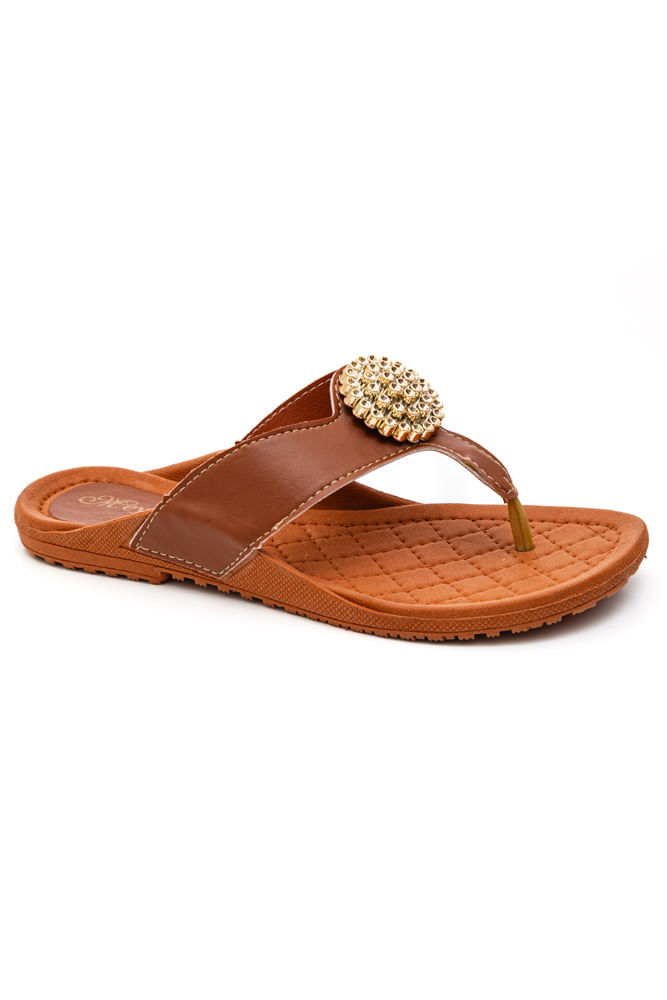 Chinelo Meyre Rasteira Feminino Napa S771 Caramelo