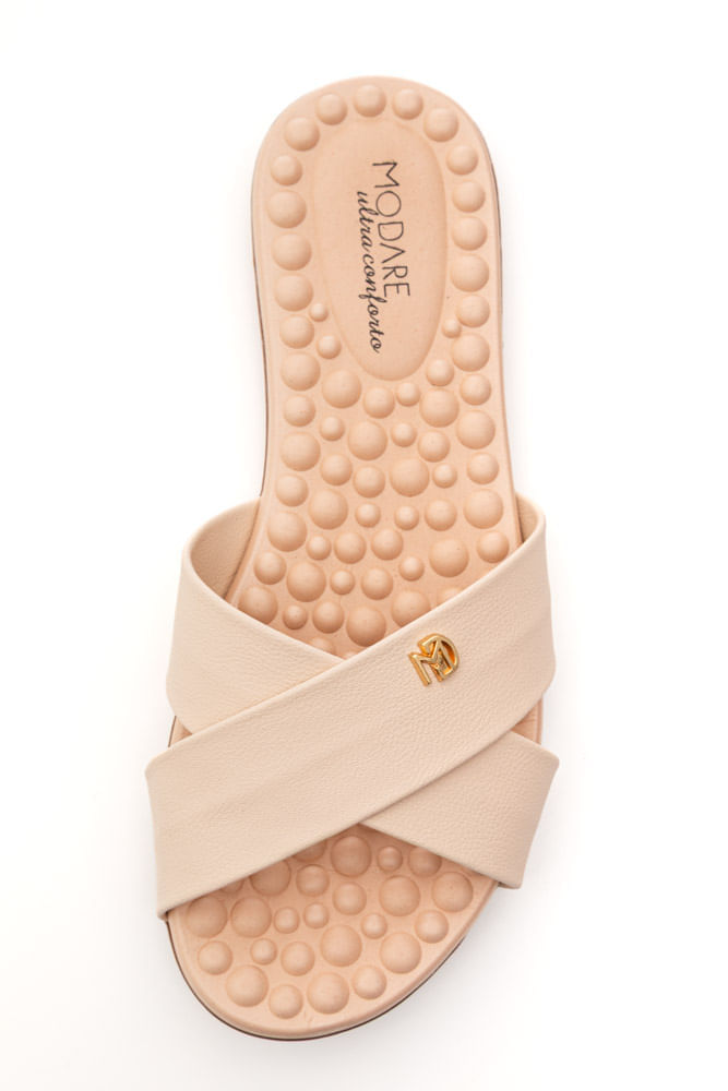 O Chinelo Modare Trançado Feminino Casual 7163.105.21736 combina conforto superior e design moderno para acompanhar seus momentos de descanso com muito estilo. Classificado como chinelo rasteiro, traz duas tiras largas em napa strech cruzadas em formato de “X”, com um elegante detalhe metálico dourado na lateral, que adiciona charme ao visual. Sua sola em TR antiderrapante aumenta a segurança ao caminhar, enquanto a palmilha com esferas massageadoras ultra conforto, oferece estímulo suave e bem-estar prolongado. Com bico arredondado e estética contemporânea, este modelo é perfeito para quem busca leveza, estabilidade e um toque extra de cuidado para os pés. Ideal para uso diário, proporcionando relaxamento a cada passo.