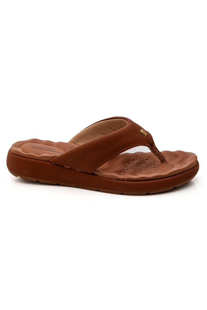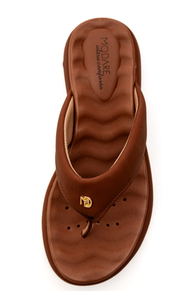 O Chinelo Modare Ultra Conforto Feminino 7222.101.29516 é um modelo casual pensado para quem prioriza bem-estar sem abrir mão de estilo. Confeccionado em material sintético de toque macio, possui tira larga sobre o peito do pé e divisor de dedos, garantindo ajuste confortável. Não tem fechamento, sendo calce fácil e prático. A palmilha é macia, com leve anatomia e perfurações que auxiliam na respirabilidade, além de acabamento suave que acolhe os pés. O solado é em material emborrachado, flexível e antiderrapante, com leve formato anabela integrado, oferecendo discreta elevação. O bico é arredondado, acompanhando o formato natural dos pés. Visualmente, o tom marrom, o design clean e o pequeno detalhe metálico na tira trazem charme sutil. Benefício principal: conforto prolongado para o dia todo.