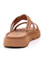 Para um look casual e elegante com a papete Moleca, combine-a com um vestido midi fluido em tons neutros, bolsa tiracolo em palha e acessórios dourados delicados. Complete com maquiagem leve e cabelos soltos com ondas naturais. Ideal para um passeio de fim de tarde ou encontro descontraído, unindo conforto e estilo com charme.