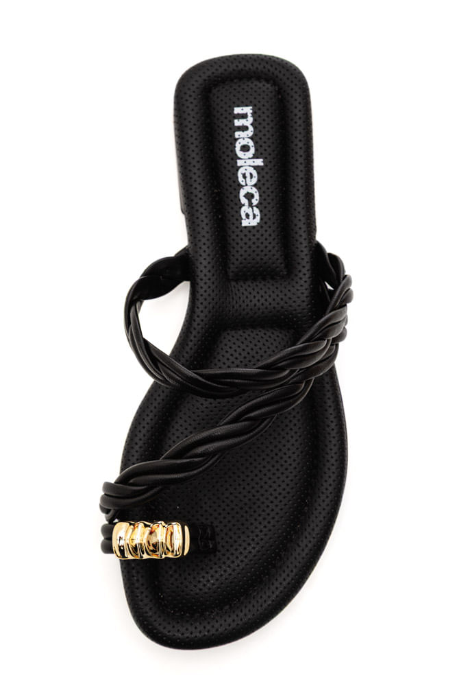 Para um passeio casual de verão, combine o chinelo Moleca 5570.102 com um vestido leve estampado e bolsa tiracolo neutra. Acrescente acessórios discretos, como brincos pequenos e óculos de sol. Este look une conforto e estilo, destacando as tiras trançadas e o detalhe dourado do chinelo, perfeito para passeios, encontros informais ou momentos de lazer ao ar livre.