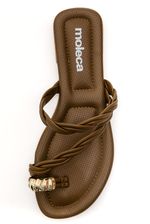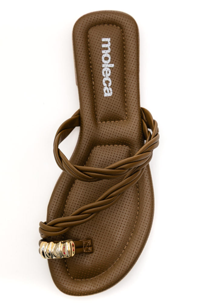 Para um passeio casual de verão, combine o chinelo Moleca 5570.102 com um vestido leve estampado e bolsa tiracolo neutra. Acrescente acessórios discretos, como brincos pequenos e óculos de sol. Este look une conforto e estilo, destacando as tiras trançadas e o detalhe dourado do chinelo, perfeito para passeios, encontros informais ou momentos de lazer ao ar livre.