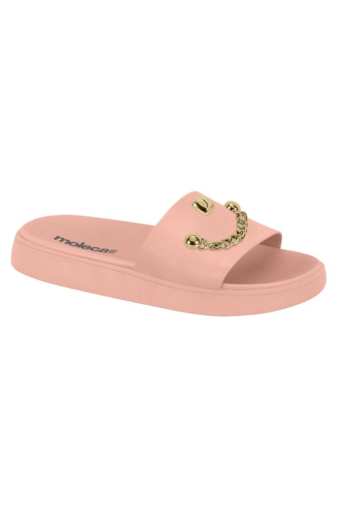 O Chinelo Moleca Slide Feminino Superleve 5469.154 possui tira slide em Napa, com palmilha em EVA macia que oferece conforto a cada passo. O solado é flatform em PVC expandido liso, garantindo estabilidade, durabilidade e boa aderência. Possui tira frontal ampla adornada com corrente dourada, conferindo um toque glamouroso ao visual. O formato é anatômico, pensado para o encaixe perfeito dos pés, proporcionando conforto durante o uso. Não possui fechamento adicional, sendo fácil de calçar e descalçar. Perfeito para passeios, encontros casuais e momentos descontraídos, o chinelo une praticidade, estilo e charme.