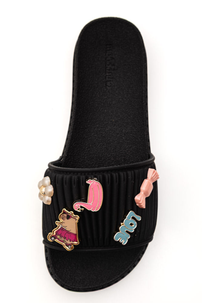 Chinelo Molekinha Rasteira Juvenil Menina Strass 2341 Preto