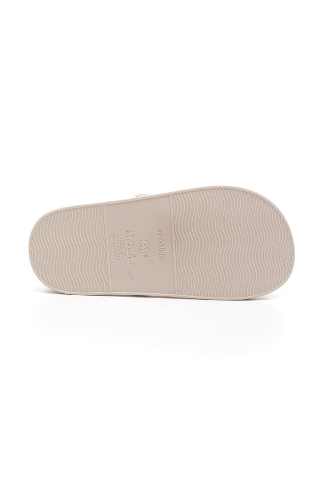 O Chinelo Molekinha Rasteira Juvenil Menina Strass 2358 é confeccionado em material sintético de ótima qualidade e durabilidade, garantindo um produto resistente e de longa duração. O cabedal é composto por três tiras finas, sendo duas decoradas com brilho em strass, que são o destaque deste modelo. A palmilha anatômica abrange melhor todo o pé, proporcionando um conforto superior durante o uso. O solado é fabricado em TR, um material resistente e flexível.