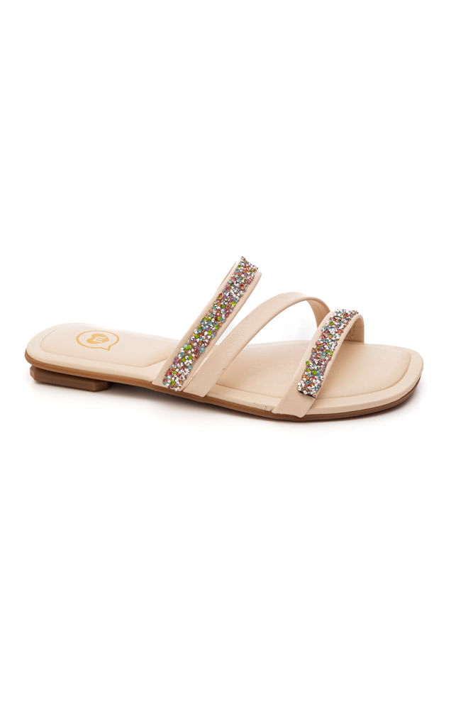 Chinelo Molekinha Rasteira Juvenil Menina Tiras Strass 2354.117 Off-White