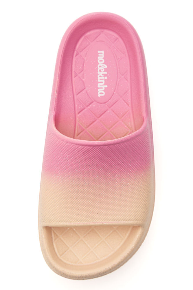 O Chinelo Molekinha Slide Juvenil Menina Degradê 2338.300.30492 é perfeito para quem busca conforto e estilo no dia a dia. Da categoria casual/slide, ele é confeccionado em 100% material sintético, garantindo leveza, resistência e fácil limpeza. A estrutura tipo slide, sem fechamento, permite calce rápido e prático, ideal para a rotina das meninas. O bico arredondado acomoda melhor os pés, enquanto o salto baixo e reto mantém a pisada natural e estável. A palmilha anatômica e texturizada proporciona mais conforto e segurança ao caminhar, com solado sintético aderente que auxilia na estabilidade. O grande destaque fica por conta da estética em degradê rosa e vermelho, moderna e divertida, que valoriza qualquer look casual. O principal benefício do modelo é unir praticidade, conforto e visual encantador, acompanhando momentos de lazer, passeios, praia ou piscina com muito mais leveza e estilo.
