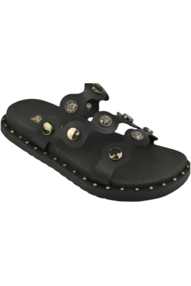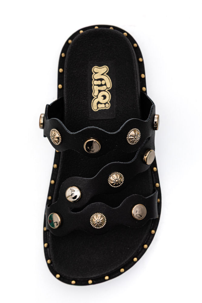 O Chinelo Nilqi Boho Juvenil Menina Rasteira 380.02.01 possui tiras onduladas que se cruzam sobre o pé, confeccionadas em material sintético decoradas com tachas metálicas redondas e lisas. O solado é em PVC expandido, garantindo leveza e conforto, com estampa lisa para um visual clean. O formato é anatômico, favorecendo o ajuste ao pé, e o modelo é de calce fácil, sem fechamento adicional. Indicado para uso casual, oferece praticidade e estilo em dias quentes. Ideal para meninas que buscam conforto e um toque fashion no dia a dia.