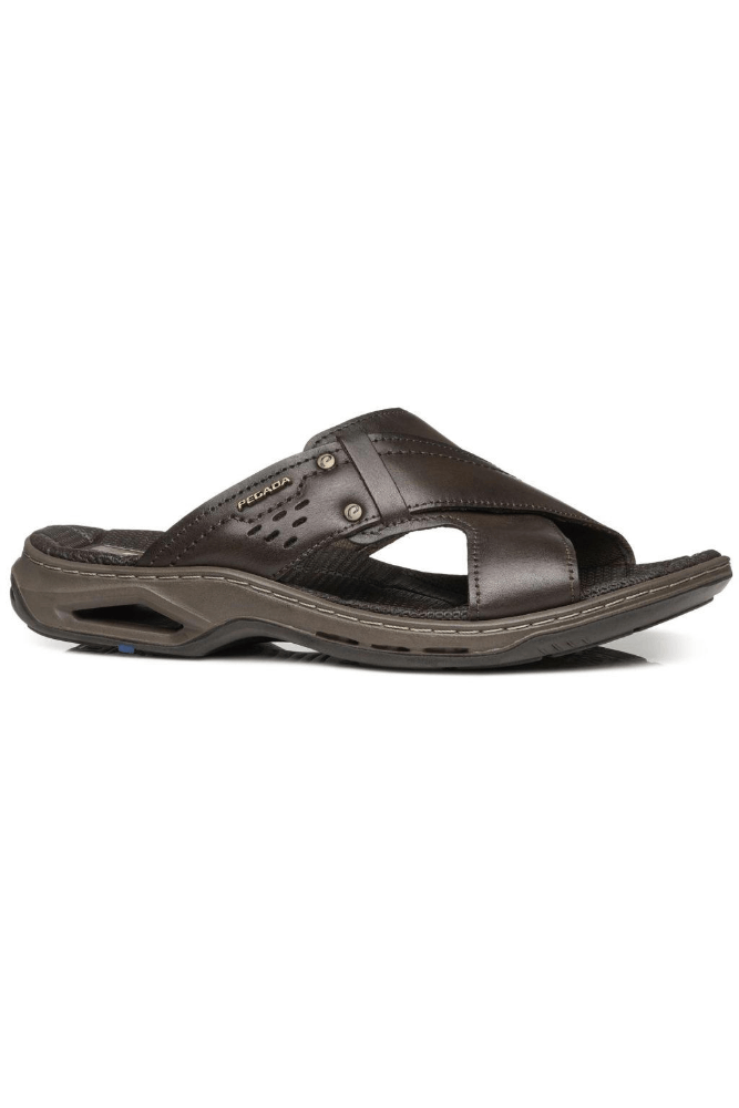 O Chinelo Pegada Masculino Em Couro 133236-02 é confeccionado em couro resistente e macio, com solado leve e flexível que oferece amortecimento por bolha de ar para reduzir impactos. A palmilha em couro com textura em bolinhas traz conforto extra, enquanto as tiras largas em couro garantem ajuste firme. O formato anatômico acomoda bem os pés e o logo Pegada aparece de forma discreta. Funcional e confortável, é ideal para o dia a dia ou momentos de descanso, oferecendo estabilidade e maciez a cada passo.