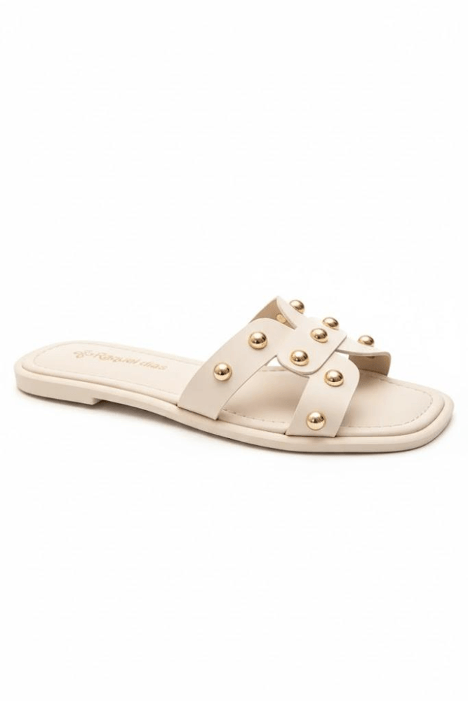 Chinelo Raquel Dias Rasteiro Feminino Apliques Metálicos 951921 Off-White